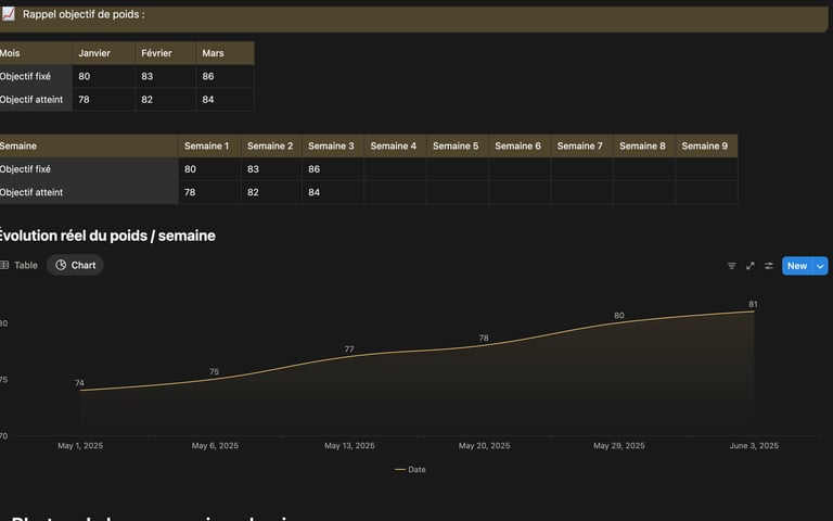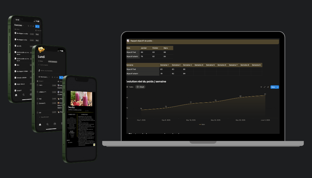 Un plan nutritionnel adapté à vos objectifs, à votre emploi du temps et à vos goûts, modulable et ajustable selon vos retours.