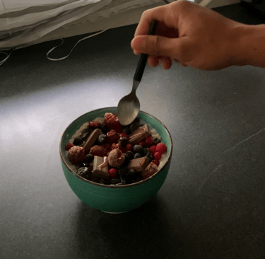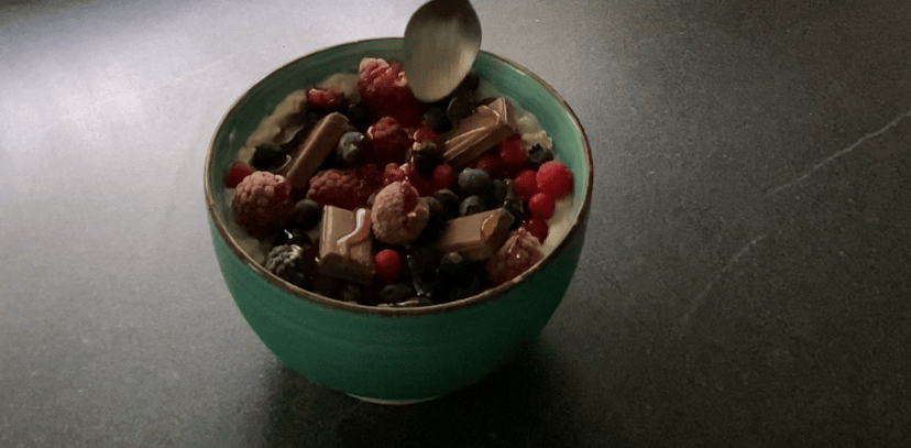 Shake Protéiné : Mixez du lait d'amande, une banane, de la poudre de protéines, des flocons d'avoine et des fruits rouges pour une boisson saine idéale après l'entraînement.